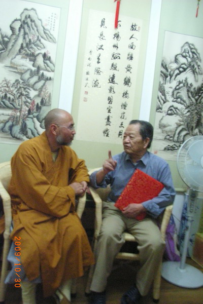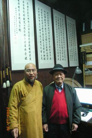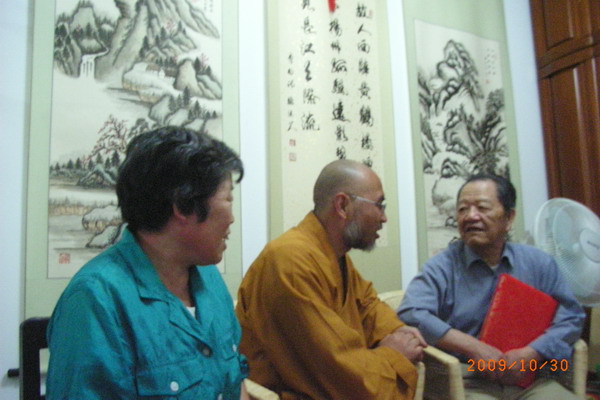 由于好奇,我打听到了他已是古稀长者,也听到了他老人家的电话,令人高兴的是他还是一位和蔼可亲的长者,当我说明正在为天台山慈恩寺发心组建“佛教艺术书画研究院”想登门拜访时,受到了老人家的热情邀请。
