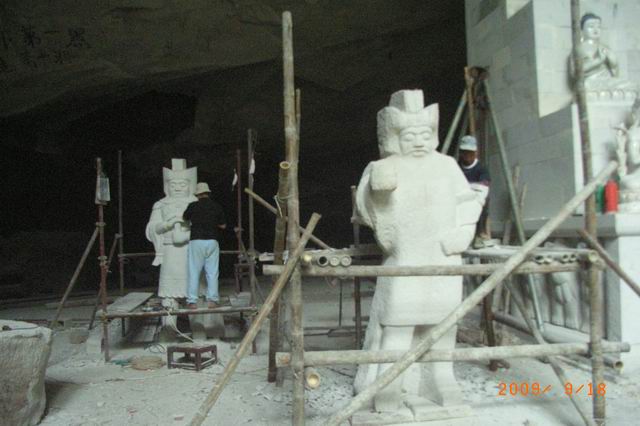 天台山慈恩寺的石雕风格令人难忘,看了还想再看,而且越看越觉得有味道。这不?据慈恩寺住持智渡法师介绍,我们看到的、正在雕刻的护法大将(都有二米五高),就是与十二生肖对应的十二药叉大将。这些大将的身形已见端尓.....